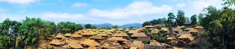 翁丁的“翁”為水,“丁”為接,翁丁,意為連接之水。該地有幾條小河相互連接,以此得名。翁丁原始村落距縣城30千米,屬勐角鄉(xiāng)管轄范圍,共有98戶人家,400多人。因為該村還保留著許多佤家的傳統(tǒng)習(xí)俗和信仰而稱之為原始村落。