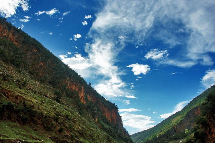 從馬雄山往西,有七彩大峽谷。峽谷起自大坡,終至德澤,全長57公里。峽谷之內(nèi)山高水長,兩岸石壁呈紅、黃、白、綠、藍(lán)、青、紫等各種色調(diào)故名“七彩谷”。