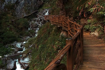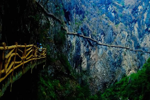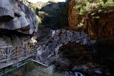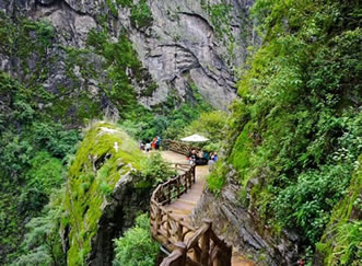 ①步行游路:福緣橋——龍王廟——天開(kāi)石門(mén)——鶴峰亭——五道水服務(wù)區(qū)——枯木要塞——萬(wàn)獸谷——百步天梯——野生芭蕉林——七道水彩虹橋,全長(zhǎng)2500米;