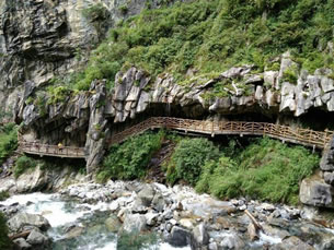大理蒼山石門(mén)關(guān)旅游區(qū)的內(nèi)部交通由步行游路、高空棧道探險(xiǎn)游路。