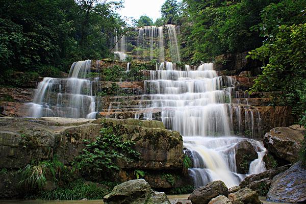 大關黃連河瀑布群距昭通市大關縣城5公里,有專線公路及中巴車直達景區(qū)。沿途山花爛漫、幽谷縱橫、清泉奔涌、鳥語花香。主要景點有仙女瀑、情郎瀑、少女瀑、月老瀑、鴛鴦瀑、洞房瀑、相思瀑、對歌瀑、姊妹瀑、銀鏈瀑、迎客瀑、壽星瀑、珠簾瀑及神秘莫測、千姿百態(tài)的白象洞,令人心曠神怡的水簾長廊和使人銷魂愜意的大滑板等20多處。加上形似飛鴿的世界珍稀植物珙桐花,堪稱天下奇景。