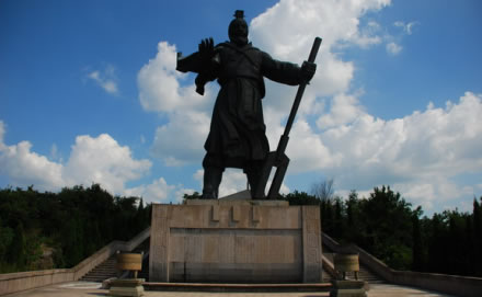 大禹銅像建在石帆山頂上。大禹銅像高21米,重118噸,建成于2001年,是大禹治水時(shí)親躬?jiǎng)谧鞯男蜗螅殖帜抉,腳踏巨舟,氣勢(shì)雄偉,屹立在石帆山頂。為了便于人們登山瞻仰,又修筑了4級(jí)臺(tái)階步行山道。