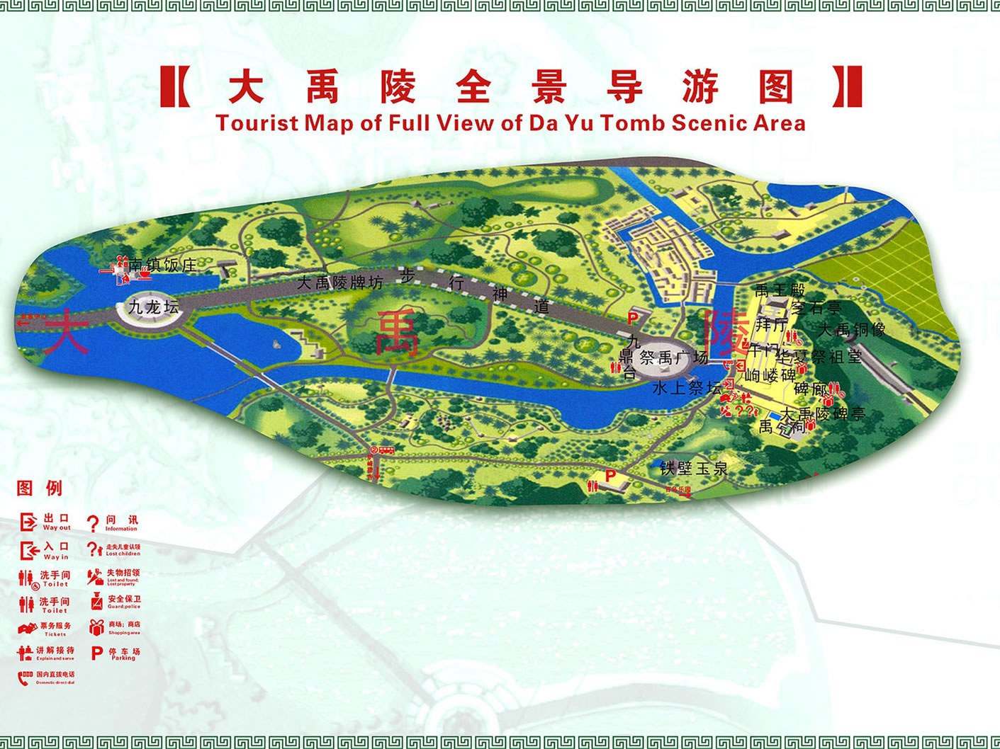 1995年5月15日,江澤民同志親臨大禹陵視察,高度評(píng)價(jià)大禹、大禹精神及公祭大禹陵活動(dòng),并親筆題寫(xiě)了“大禹陵”坊額。