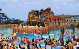 水世界:占地面積90畝,以地中海地區(qū)的地理風(fēng)貌為原型,以中東地區(qū)的文化背景和世界名著《一千零一夜》的故事為主題。建有一千零一夜戲水區(qū)、地中海海浪區(qū)、土耳其古城區(qū)、颶風(fēng)灣探險(xiǎn)區(qū)和更衣室、商鋪、醫(yī)療中心、迷童中心等相關(guān)配套服務(wù)設(shè)施,擁有亞丁風(fēng)暴、幼發(fā)拉梯、辛巴飛毯、波塞冬碗、多哈滑道和愛(ài)琴藍(lán)海(海浪區(qū)、海嘯區(qū))等大型水上游樂(lè)設(shè)備和游樂(lè)區(qū)域,游客容量在10000人以上。