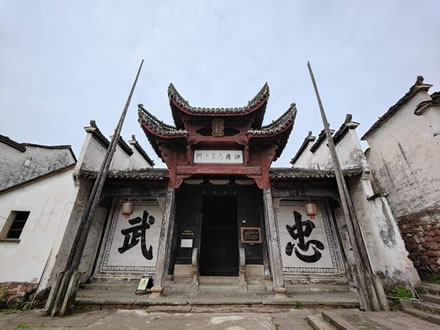 位于村的中心,坐北朝南。前面有一個名曰“鐘池”的水塘,鐘池有一道墻,正面是一幅大八卦圖(左),背面是一個“!弊帧4蠊梦挥阽姵乇眰(cè),始建于明代,據(jù)說是江南地區(qū)僅存的諸葛亮紀(jì)念堂。祠堂前后五進(jìn),建筑面積700平方米。里間十分開闊,可供數(shù)千人舉行活動。堂內(nèi)壁上繪有三顧茅廬、舌戰(zhàn)群儒、草船借箭、白帝托孤等有關(guān)諸葛亮的故事壁畫。堂外圍墻旁現(xiàn)存六株龍柏,暗示諸葛后人六族繁衍,人丁興旺。門庭飛閣重檐,高約10米,上懸一塊橫匾“敕旌尚義之門”。頂層有明英宗于正統(tǒng)四年(1439)所賜盤龍圣旨立匾一方,表彰諸葛彥祥賑災(zāi)捐谷千余石的義舉。整座建筑古樸典雅,氣勢恢宏,保存完好。